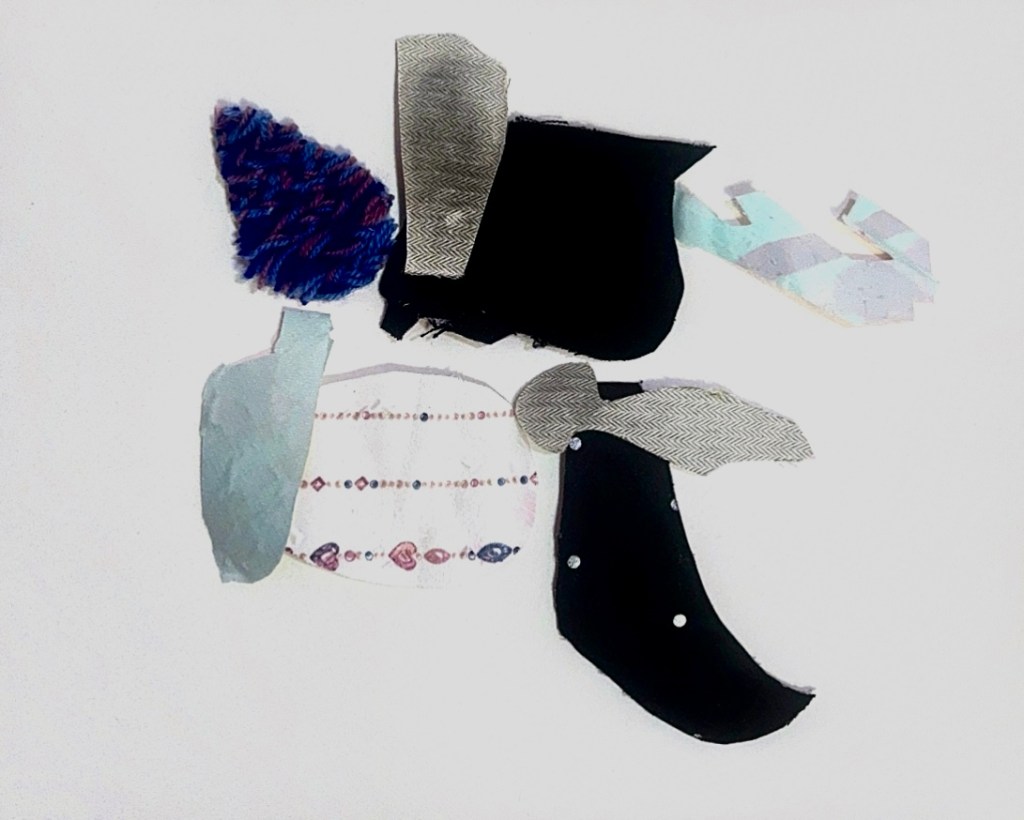 For this assignment, I used two kinds of sheer fabric, black denim, a black fabric with reflective polka-dots on it, silky fabric, two kinds of woven fabric, and for the last one I braided strings of yarn in order to create my own texture.